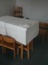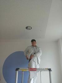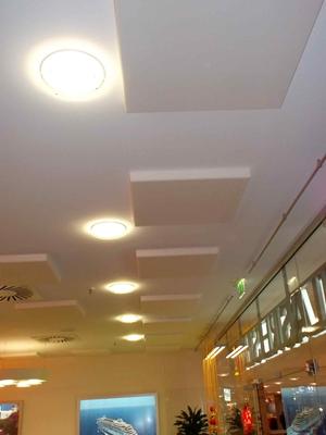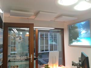 Akkustikelemente mit Spezialkleber dierekt an die Decke geklebt Atlas Reisebüro Neu Isenburg