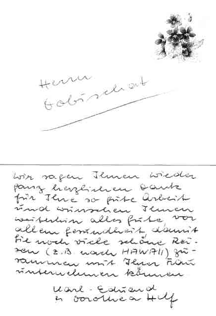 Dorothea und Karl-Eduard Helf: Wir sagen Ihnen wieder herzlichen Dank für Ihre so gute Arbeit und wünschen Ihnen weiterhin alles Gute.