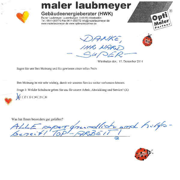 Herr Herbert Vogt: Sie arbeiten sauber, zuverlässig und zügig, und halten vereinbarte Termine ein. Herr