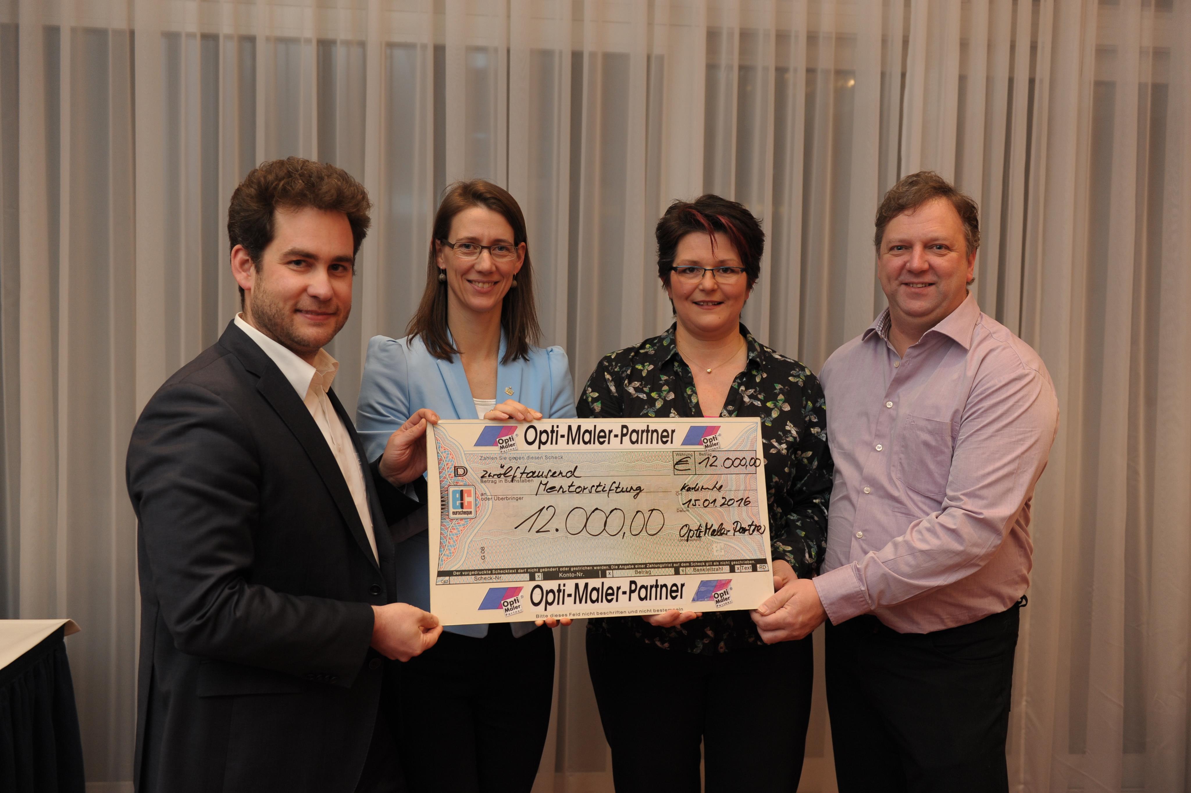 In einer kleinen Feierstunde, übergab maler laubmeyer am Freitag, 15. Januar 2016, den Scheck an die Verantwortlichen der Stiftung, Bettina Gräfin Bernadotte und Moritz Ritter, Mitglied des Vorstands. Bettina Gräfin Bernadotte und Moritz Ritter bedankten sich sehr herzlich für die großzügige Spende würdigten das vorbildliche soziale Engagement von maler laubmeyer und Opti-Maler-Partner.
